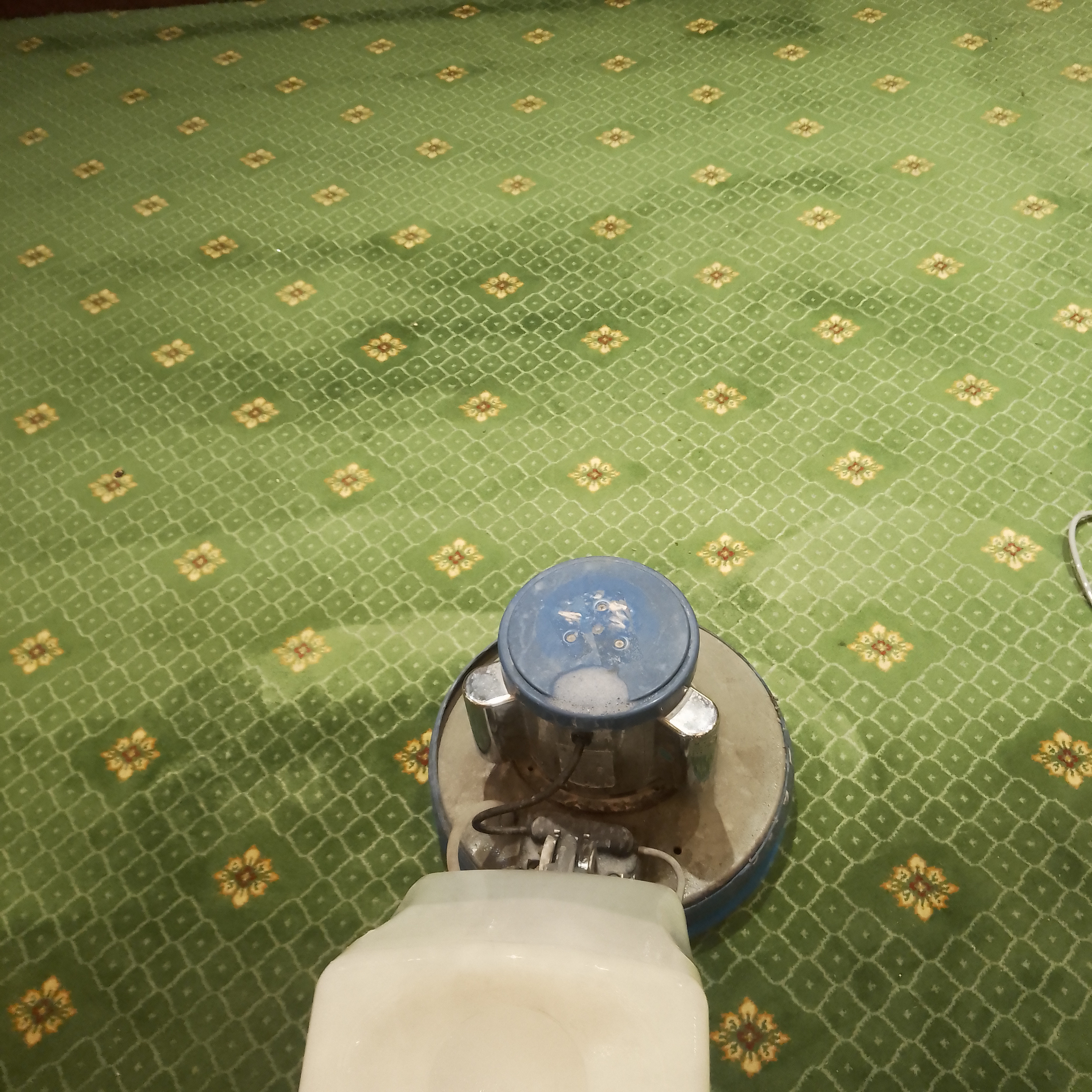 二、干泡清洗(主要用于純毛地毯) 1、用大功率吸塵器全面吸塵, 2、用專用的地毯清潔劑在地毯上邊的油漬、果漬、咖啡漬單獨進行局部特別處理, 3、稀釋高泡地毯清潔劑,將稀釋好的高泡注入水箱,并均勻的噴灑到地毯表面, 4、用手刷處理地毯邊緣、角落和機器難于推到之處, 5、用裝有打泡器、地毯刷的單盤掃地機以干泡刷洗的方式清洗地毯, 6、作用一會兒,然后重復作業(yè), 7、用地毯梳梳起地毯纖毛加快地毯干燥, 8、采用開窗或使用吹風機等方式使地毯完全干透, 9、用吸塵器吸去污垢和干泡結(jié)晶體結(jié)束清洗 電話:13161252518 |